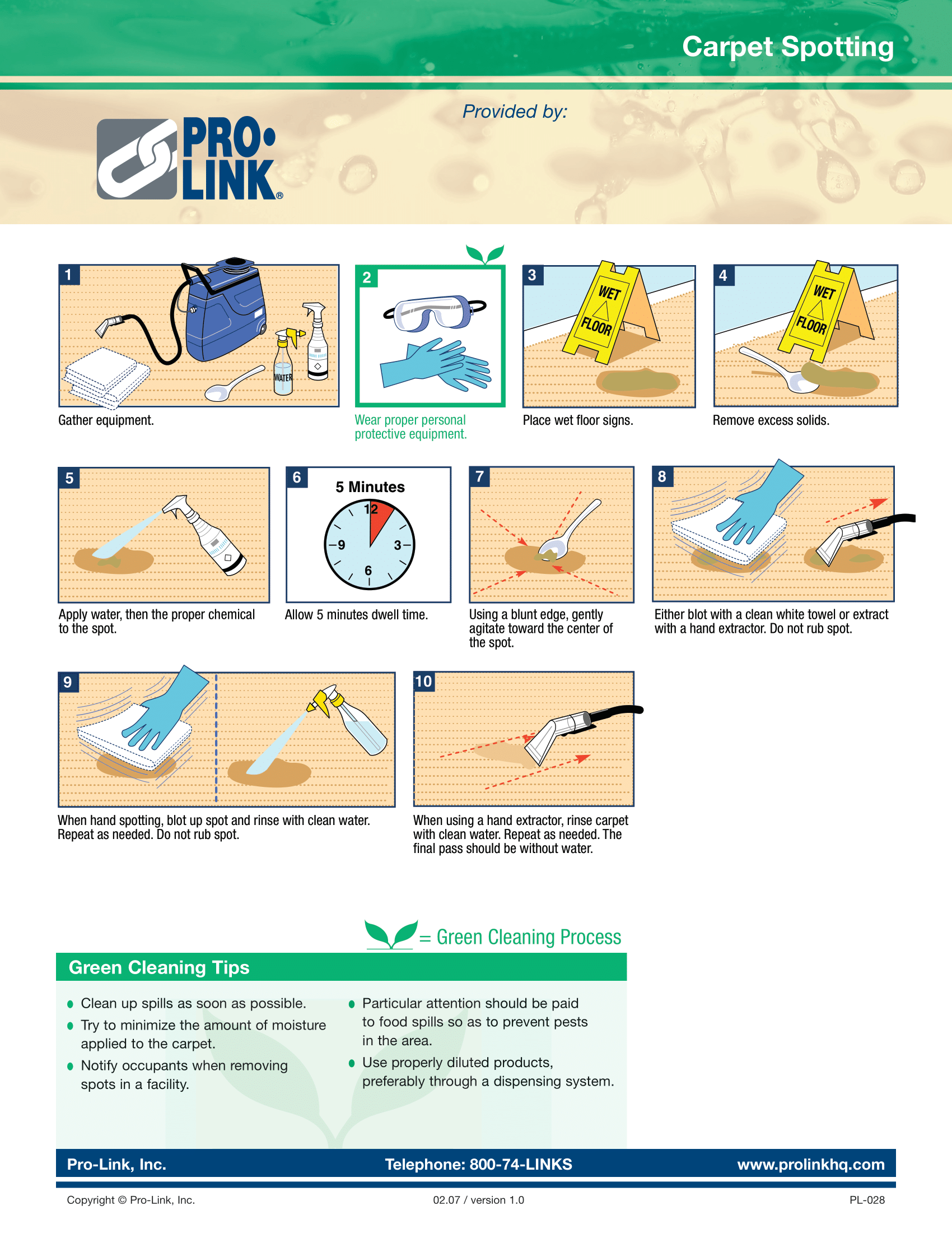 We recommend that all households and businesses keep a quart of ProLink All Purpose Spotter handy. When a spot occurs on your carpeting