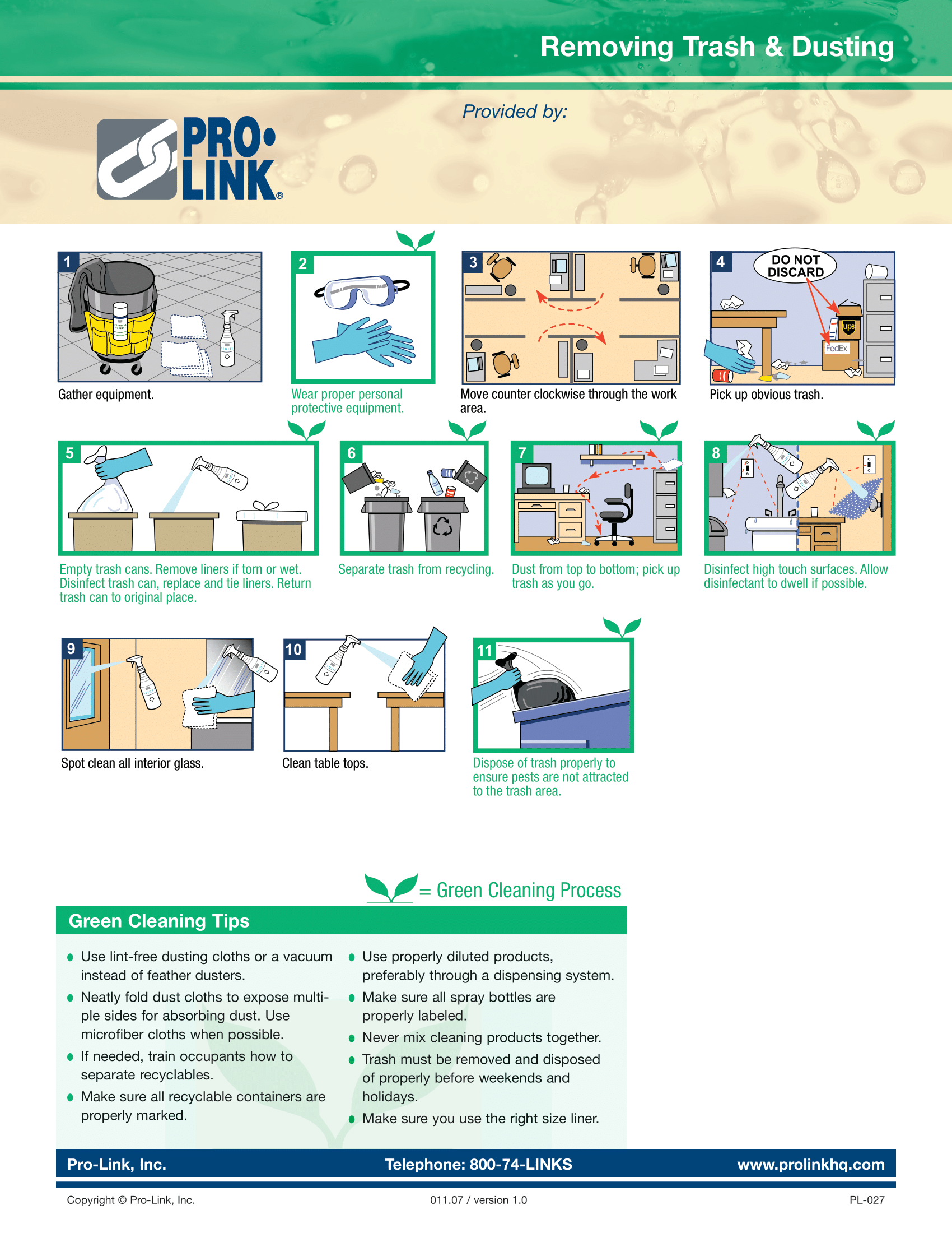 Pick Up Trash and Dirt: Use a dust pan and counter brush to sweep up accumulated trash. Empty this into a trash chute or trash container.