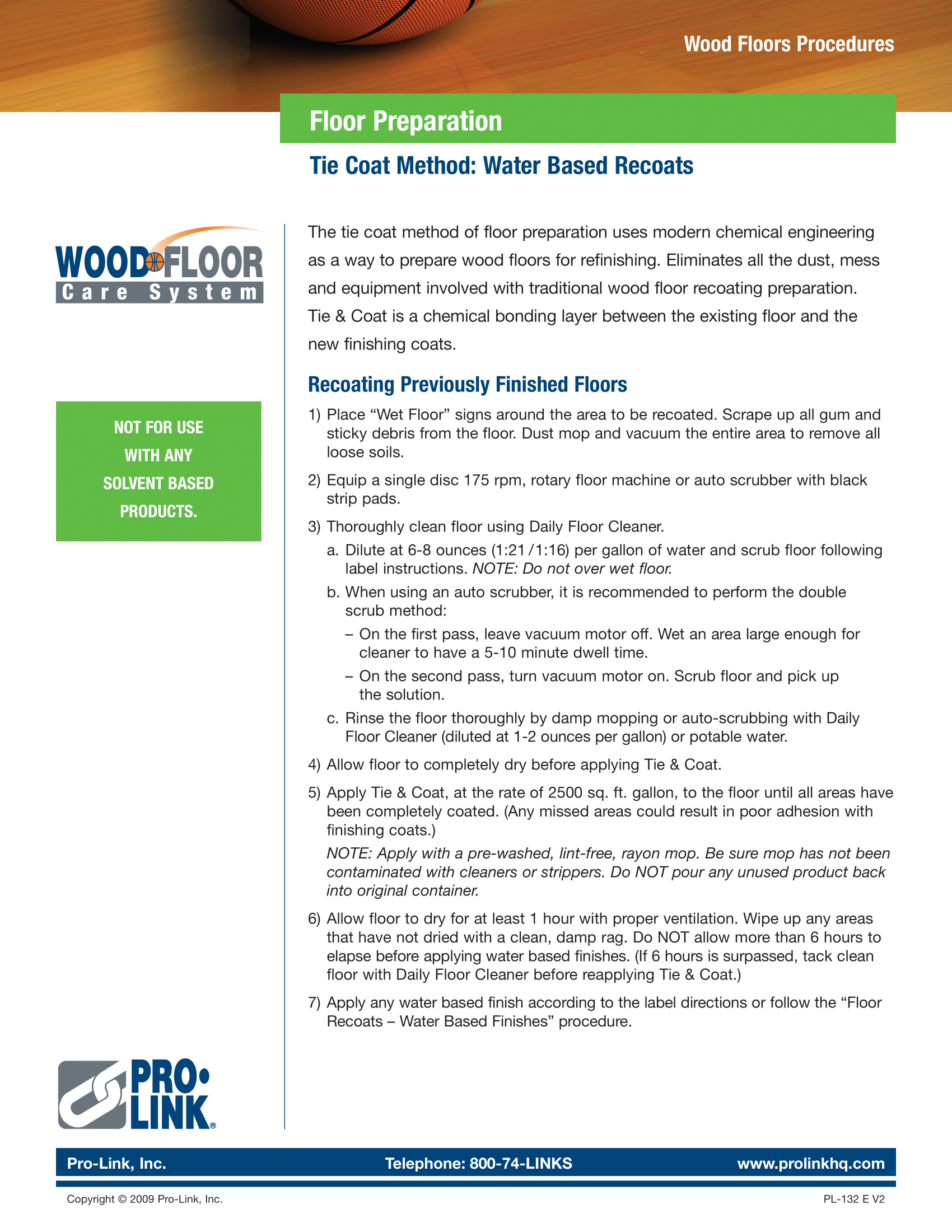 Additional Coats: Repeat the above instructions using ‘floor finish’ for the next two and subsequent coats. More coats allow more protectin for the floor and a better appearance. If a high speed burnishing program is used, apply at least two coats of finish over the seal. Let the floor dry as long as possible before opening to traffic.